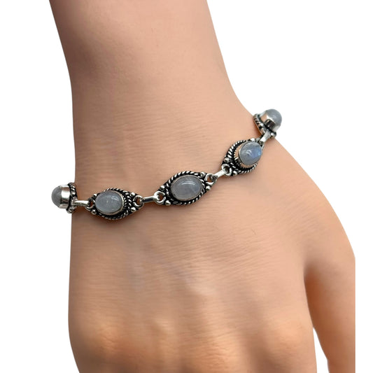 White Moonstone Alloy Bracelet 7”
